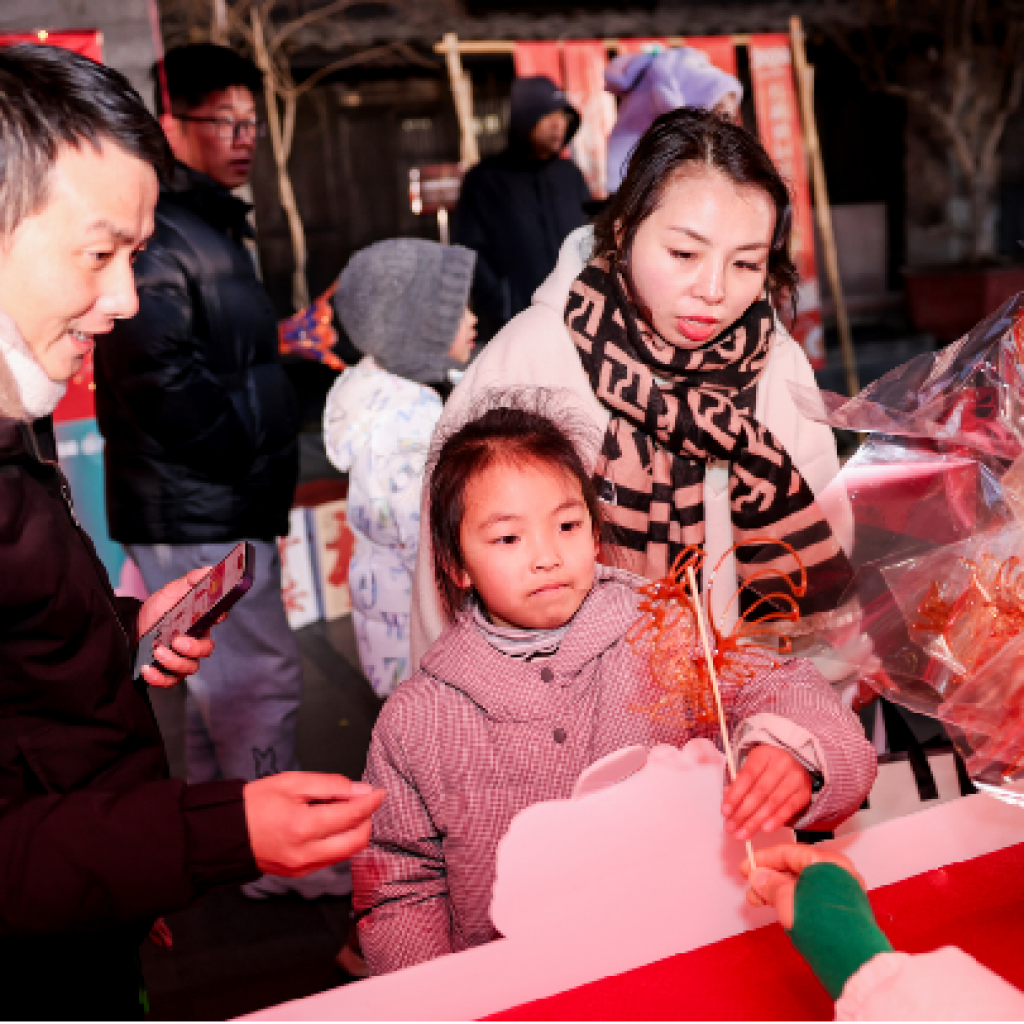 “年畫拓印”非遺手藝體驗(yàn)、清源茶館的湯圓手作、還有糖畫訂制、投壺游戲等民俗互動(dòng)攤位,也吸引了不少的顧客市民打卡參加。