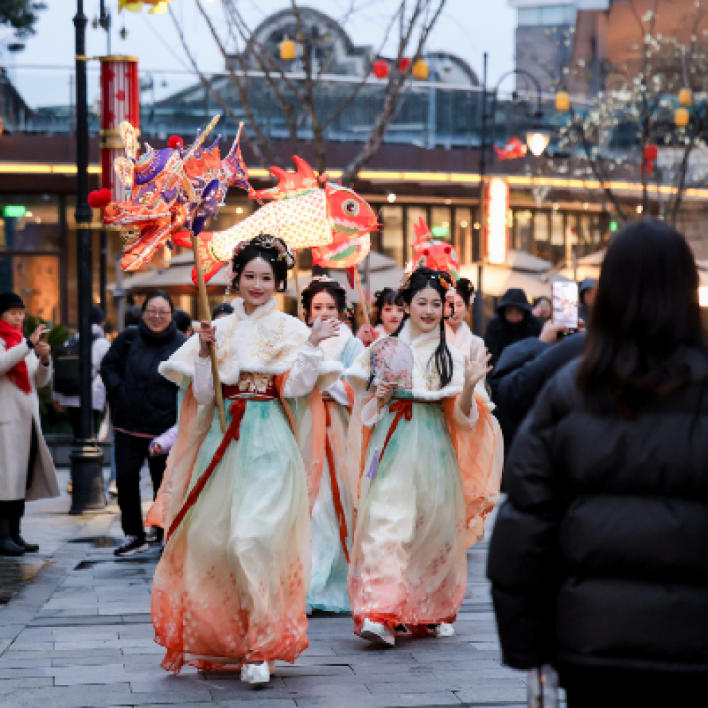 精致的魚龍燈古風(fēng)巡游出現(xiàn)在主街和小巷,與顧客互動(dòng)、翩翩起舞;