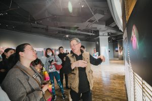 分享會結(jié)束后,干老師帶領(lǐng)大家一同到B區(qū)三層的和義藝術(shù)展廳近距離觀展。在每一幅攝影作品前,詳細(xì)解答粉絲們提出的問題:對于自身的審美,光線角度的捕捉,曝光的運(yùn)用等等。